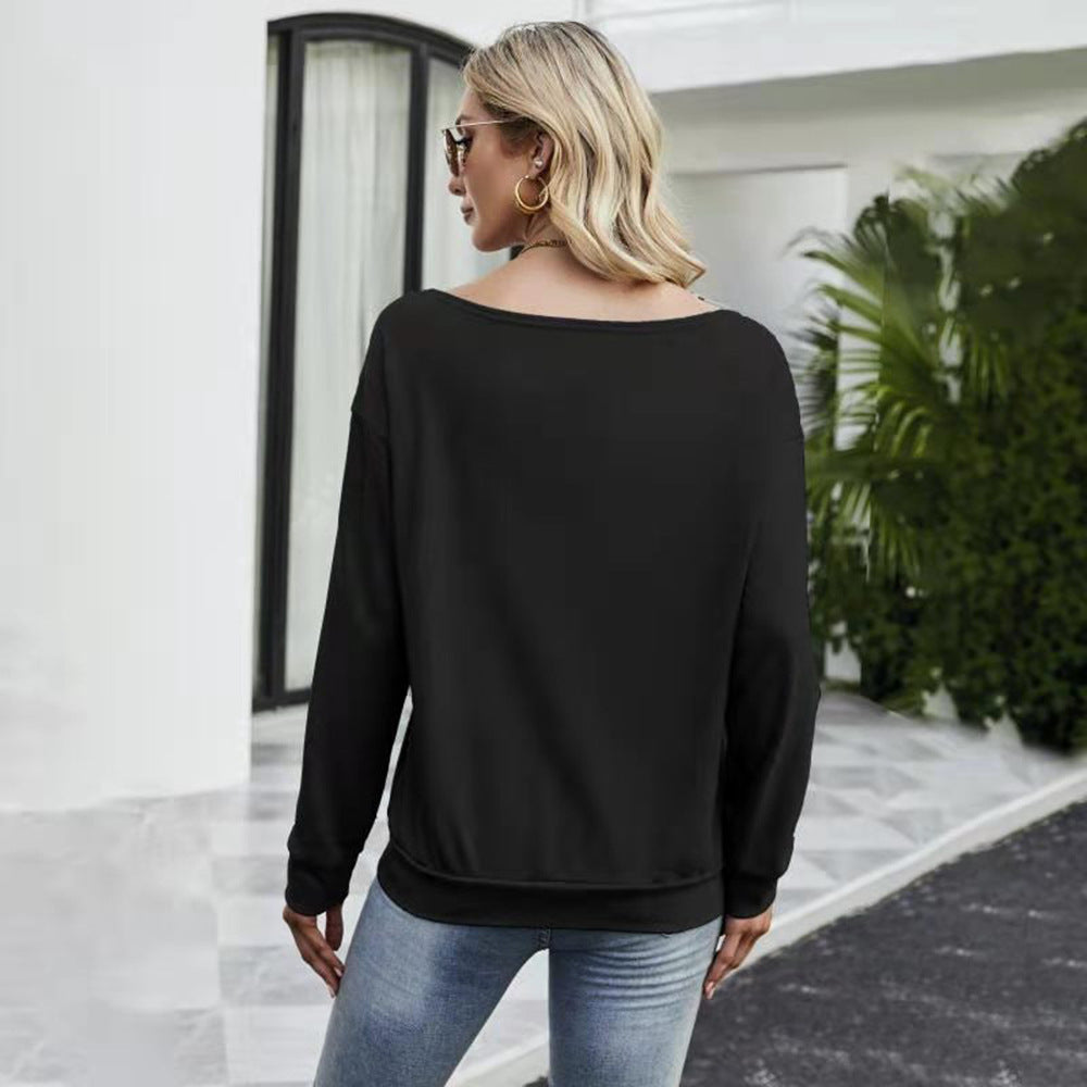 FANCYINN Women Sweatershirt Halloween Skeleton Printed Off Shoulder Pullover Casual Graphic Fall Long Sleeve T Shirt Tops