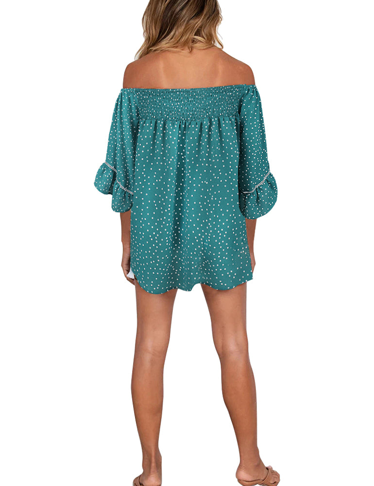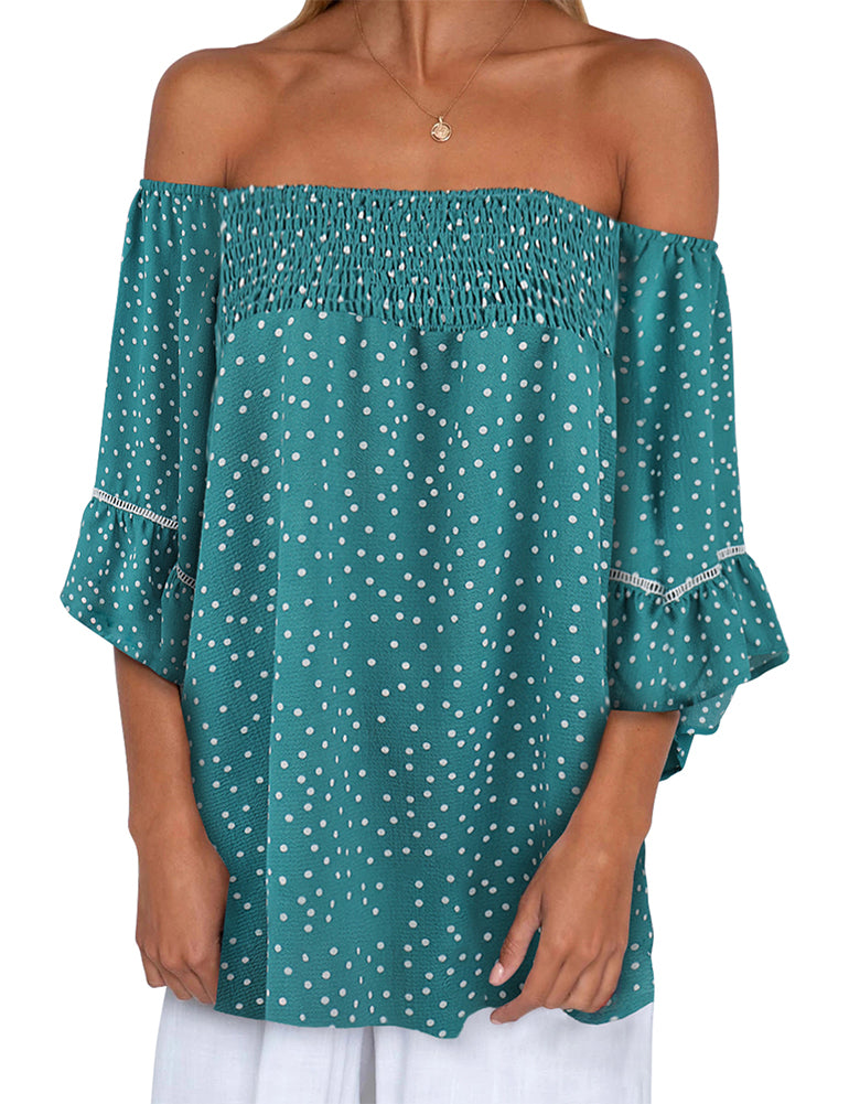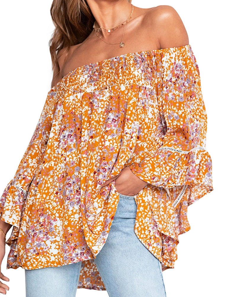 - Occasions: Design with ethnic retro flower pattern,off shoulder with elastic band, oversized long lantern sleeve, vintage and chic. Definitely a cute tops well match with short jeans or legging.