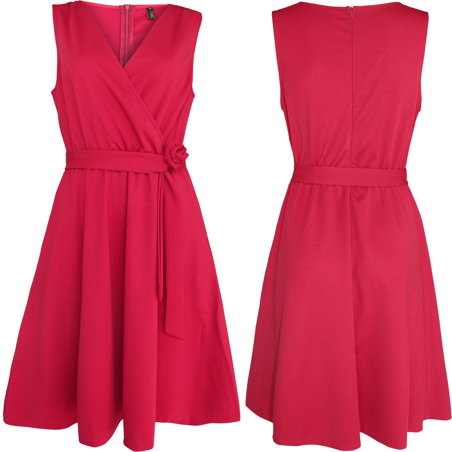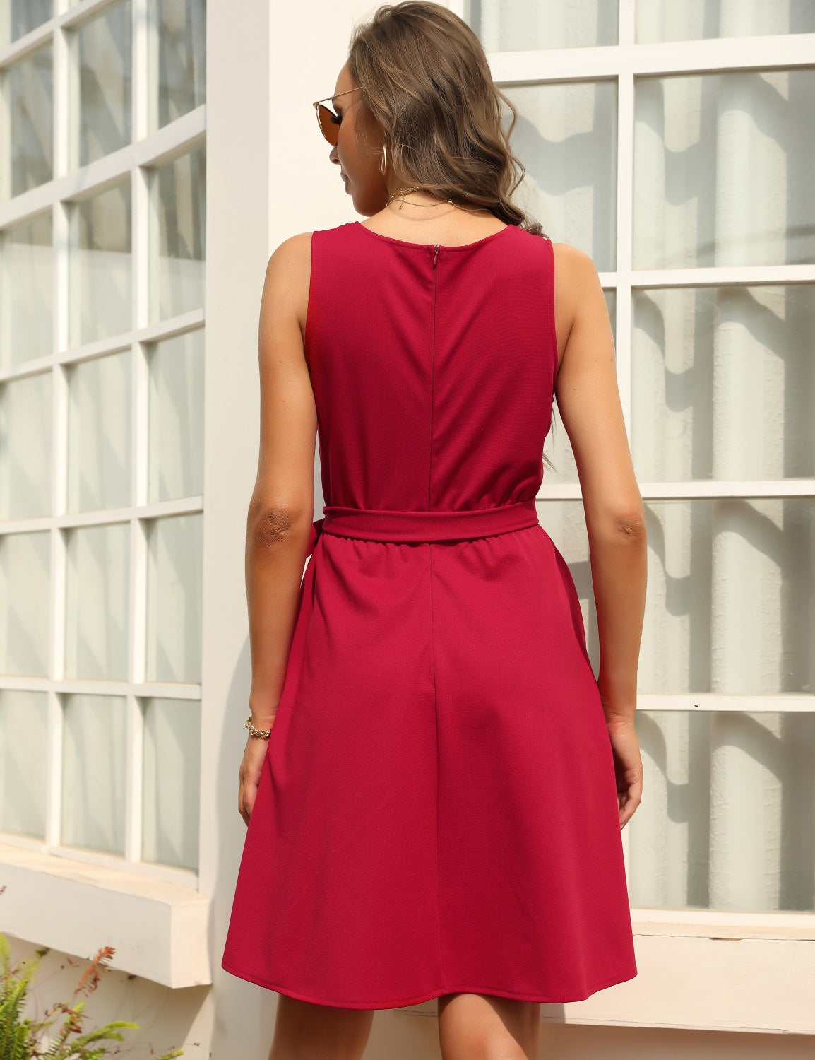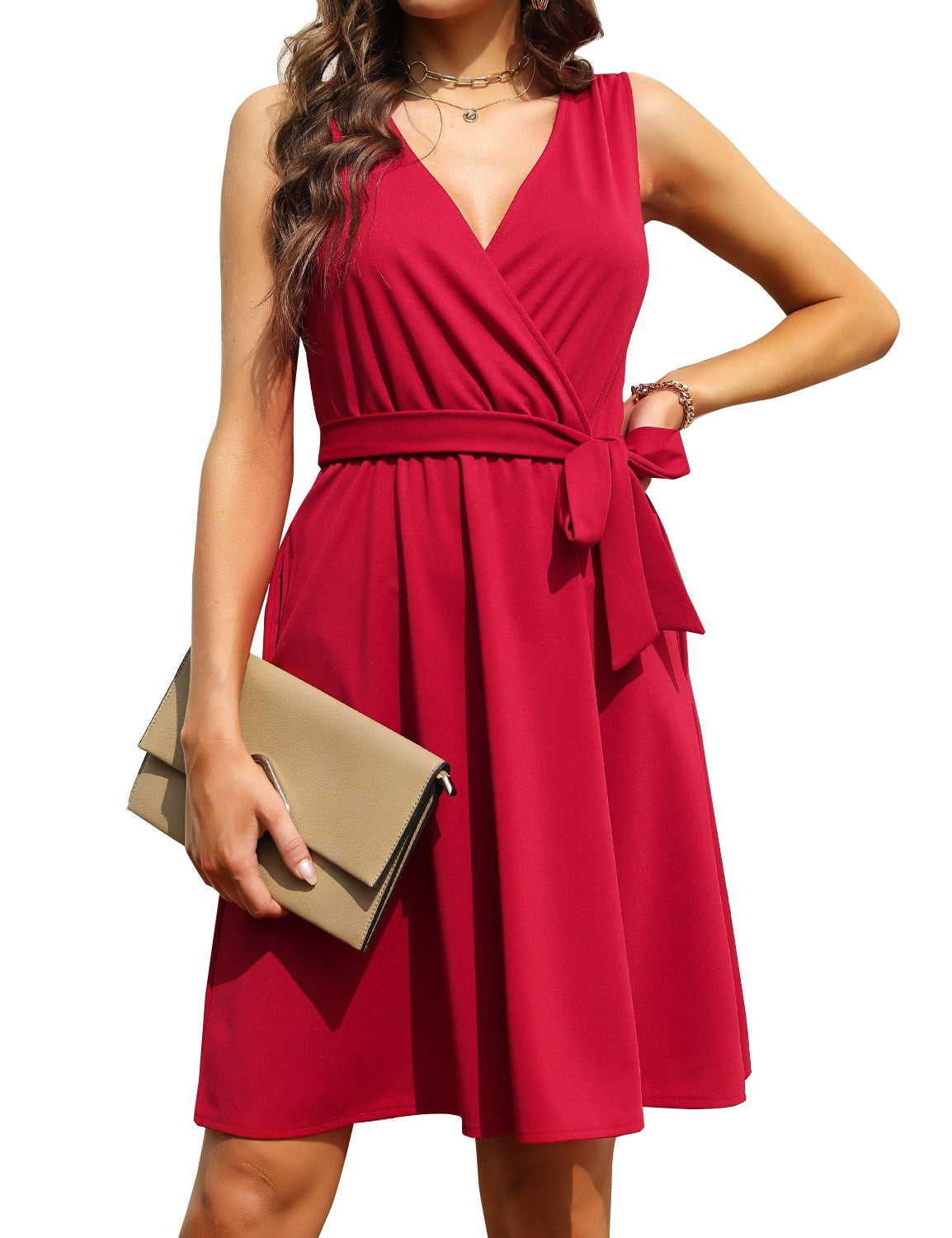 FANCYINN Womens Wrap Dress Sleeveless A-Line V-Neck Cocktail Swing Dresses with Pockets and Belt