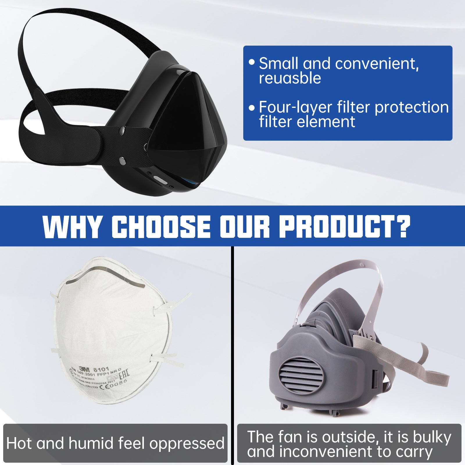 • Adopted EAPI filter technology and Advanced Nanotechnology, the 6-layer filters can filter out 99% exhaust gas, pollen, dust, particles and smoke, etc. Provide reliable protection for daily use.