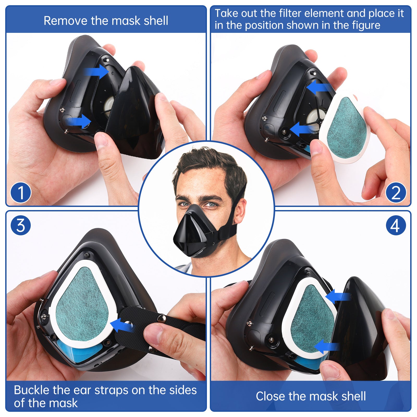• Reusable & Washable: The activated carbon filter is replaceable after time of usage, and the mesh face mask shell and valves can be detachable to wash by hand when get dirty.