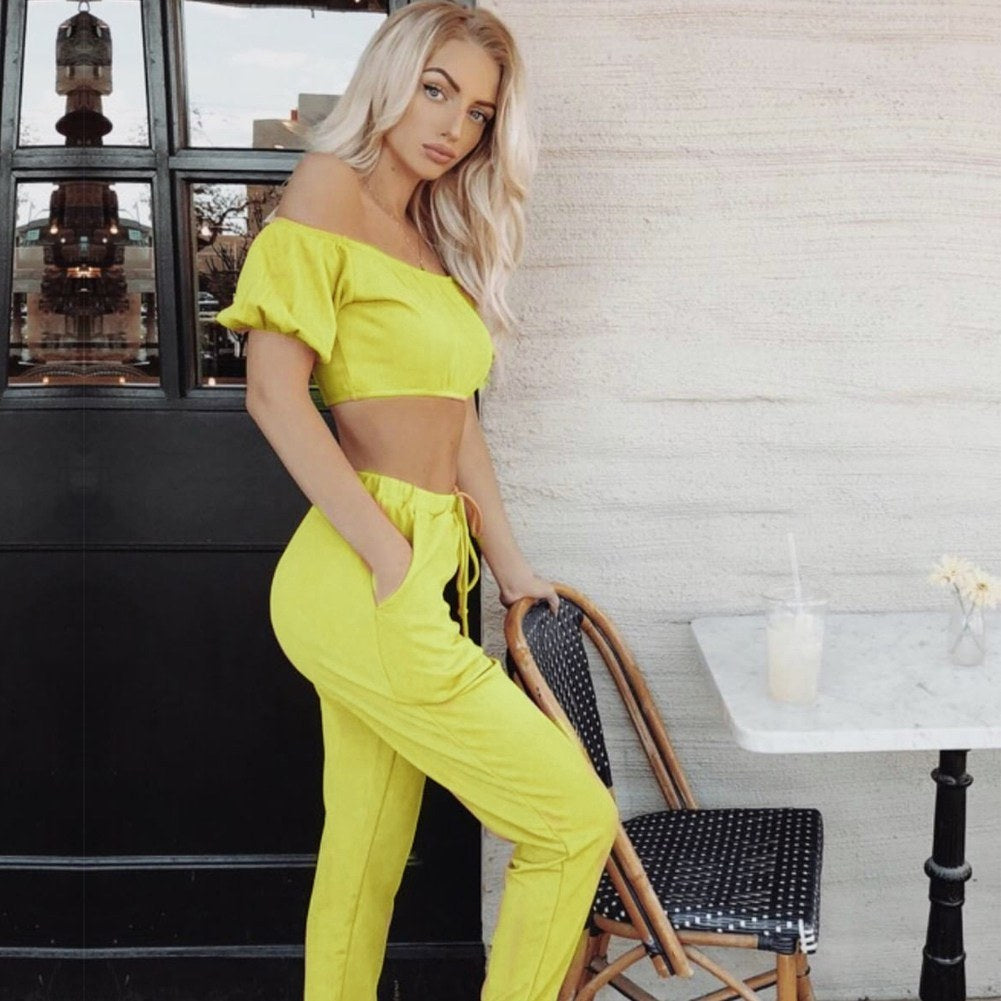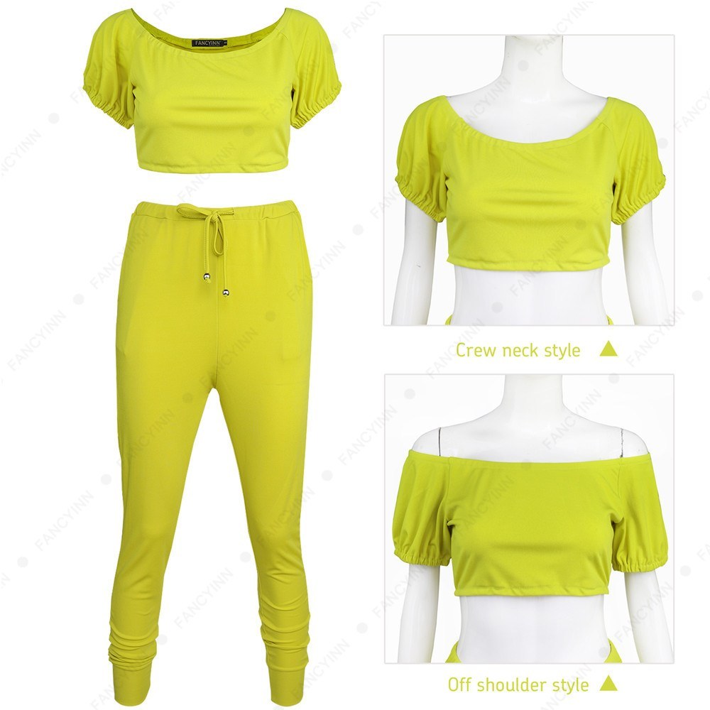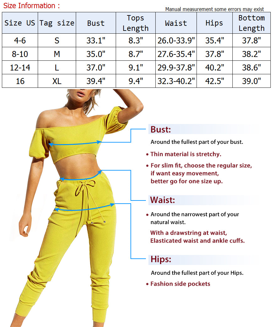 ★ ★ ★ Off shoulder 2 piece crop top and pants suit outfits, puff sleeve tee, elasticated waistband pants, with a drawstring at waist and elasticated ankle cuffs, fashion design make you more sexy and attractive.