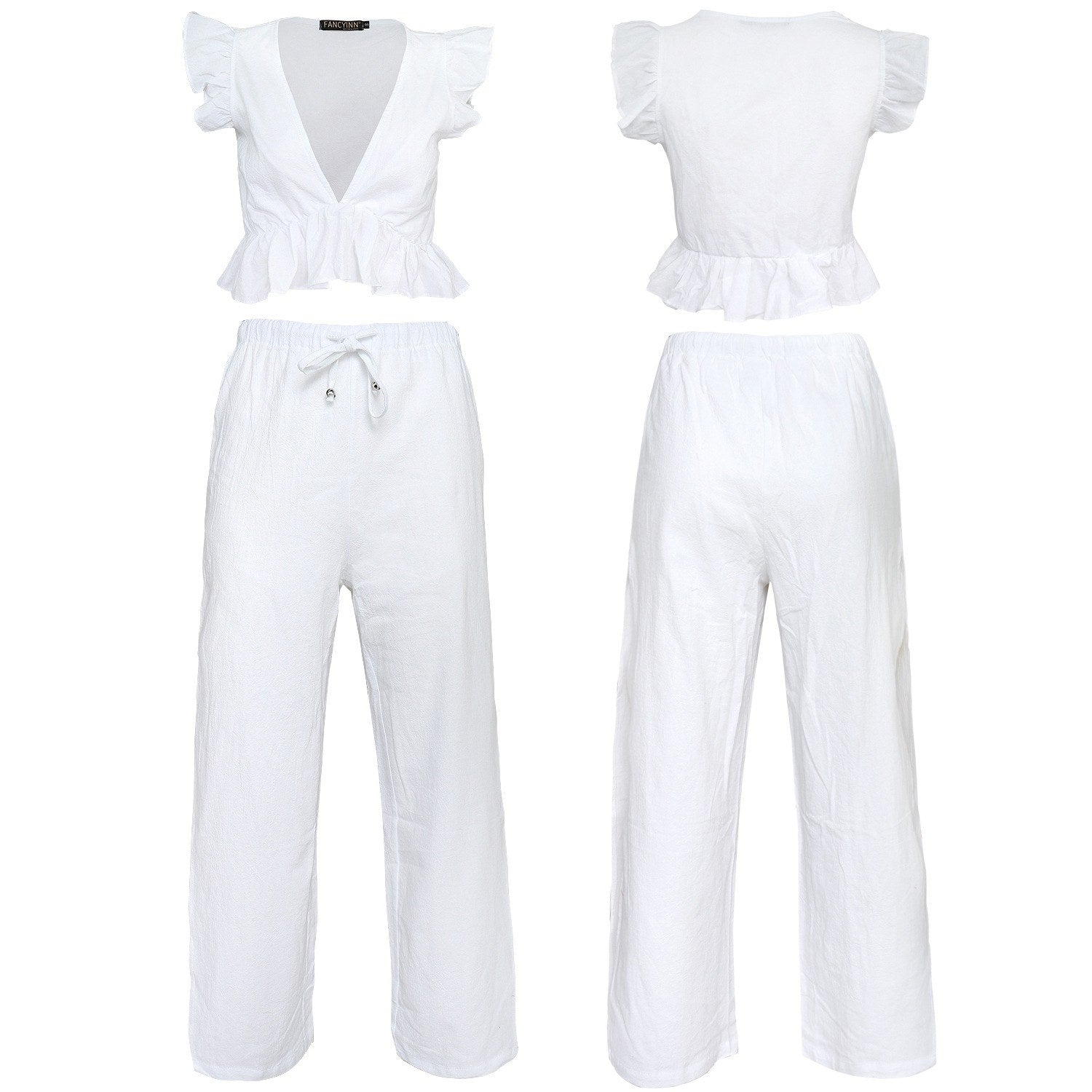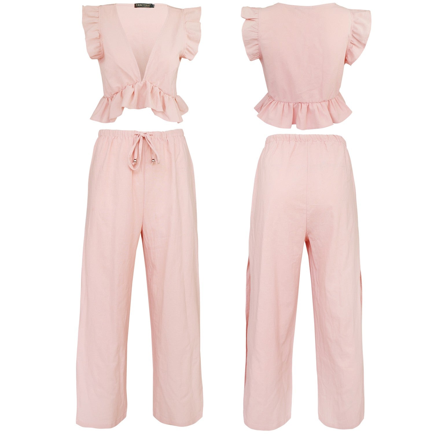 ★★★ Cropped top features a plunging V neckline, cropped length, tank sleeves and frill detailing on sleeves and hem.
